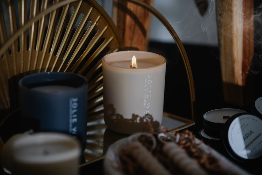 Most candles have a wax blend, most commonly you will see a soy-paraffin blend. Paraffin is the most widely used wax for a lot of candles because of it’s low cost and optimal scent throw (how much you smell both when the candle is lit and when it’s cool). Paraffin wax is derived from petroleum as a byproduct of the refining process and tends to cause more concerns in the long run. Therefore the thought of these candles being “clean” is a tad misleading. In an effort of Jolie West to carry as much clean products as we can, we went the route of coconut apricot wax!